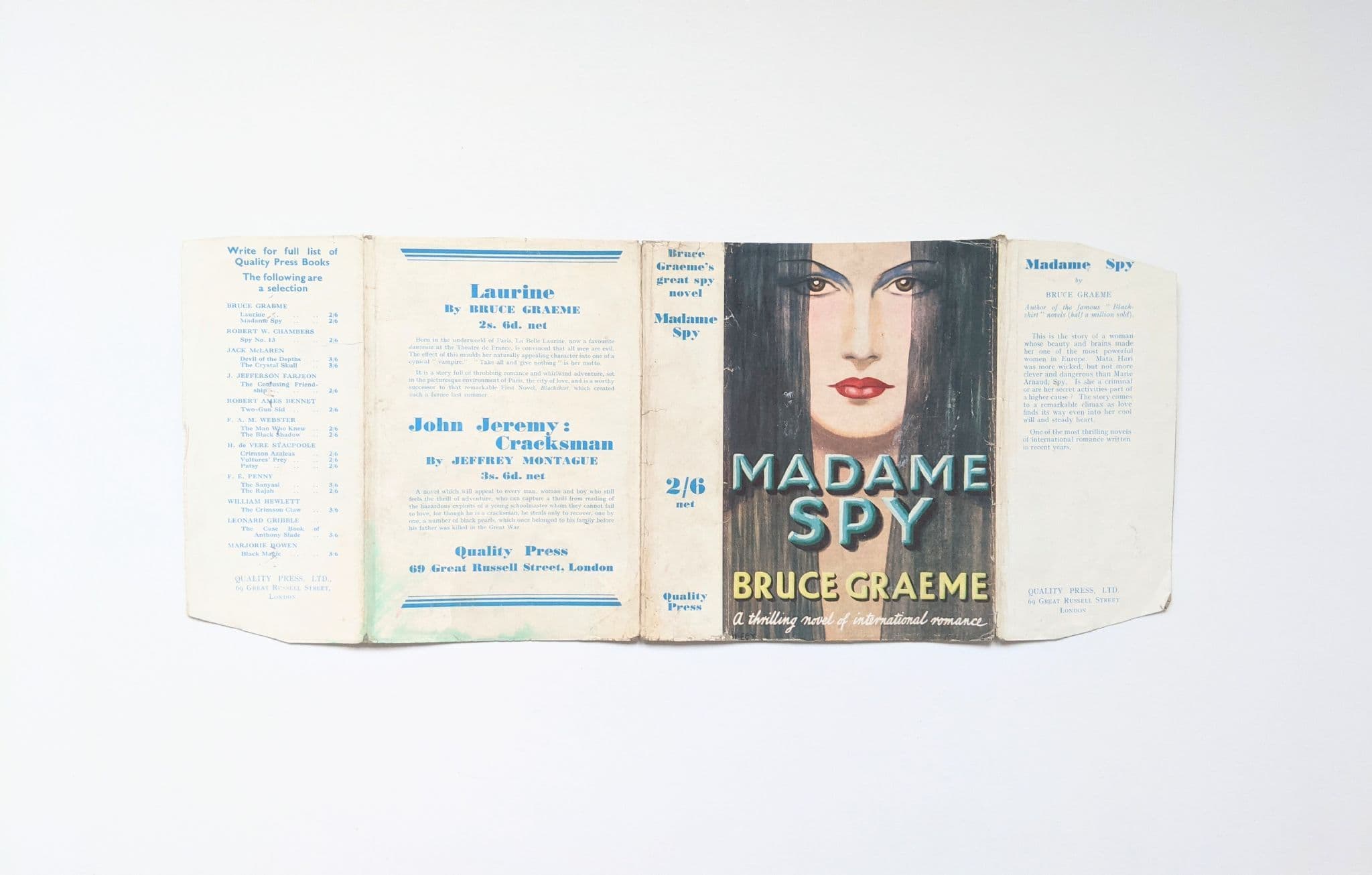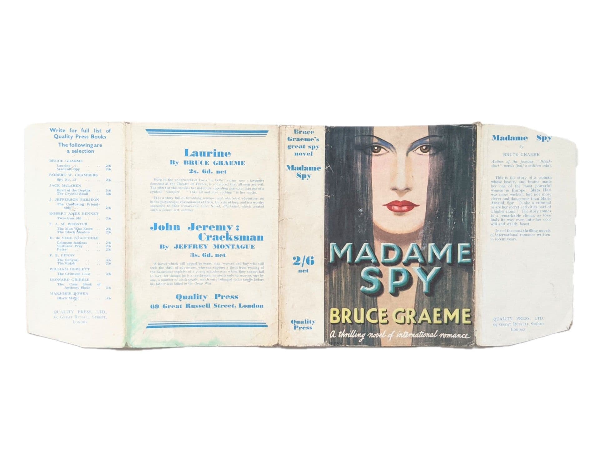 Madame Spy by Bruce Graeme Dust Jacket Only Early Reprint Quality Press c.1935